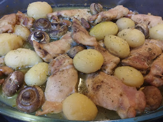 Hoy os traigo otra receta con pollo. Yo la he hecho con contramuslos, aunque la podéis hacer también con un pollo entero troceado. Queda riquísimo.